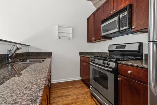 Welcome to Unit 234 at University Commons, where comfort and charm collide! This two bedroom / two bath condo has been freshly painted and featuring new carpet, this space invites you to kick back and relax. The primary suite includes an en-suite bath with a soaking tub. The second bedroom and full guest bath offer flexibility for guests, office space, or a roommate setup. Picture yourself by the cozy gas-starting fireplace or enjoying a morning coffee on your private balcony, soaking up the abundant natural light pouring through large windows. The kitchen is a chef's delight, offering rich dark cherry cabinetry, granite countertops, stainless steel appliances, and a convenient breakfast bar-perfect for entertaining. Plus, you'll love the convenience of in-unit laundry for your washing woes. The building is packed with amenities to elevate your lifestyle-think elevators for easy access, 1 garage parking space that's included, a gym to keep you fit, and a refreshing outdoor pool for those hot summer days. Don't forget the rooftop, perfect for soaking in those stellar city views. Unit 234 isn't just a place to live; it's where you'll want to be. Additional features include: generous closet space, Prime access to I-90/94, 55, and 290. Walk to UIC and enjoy nearby Mariano's and Whole Foods. Ready for a new adventure? This home has it all!