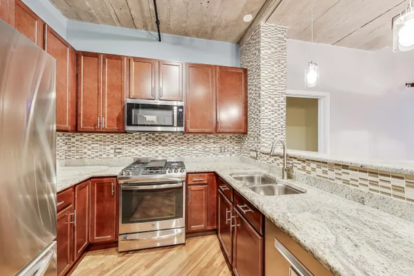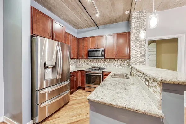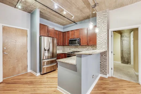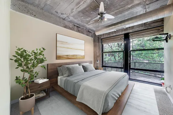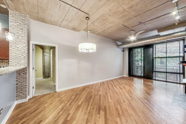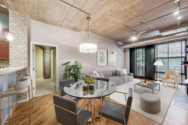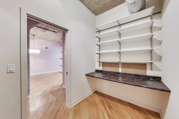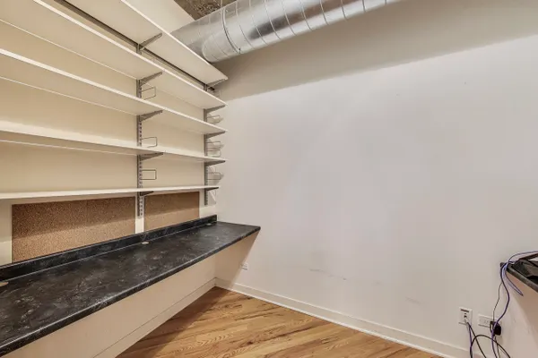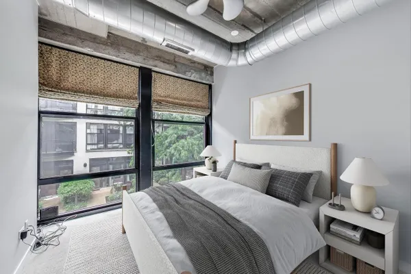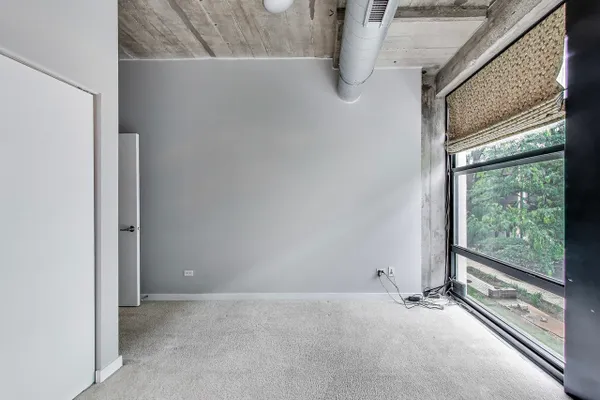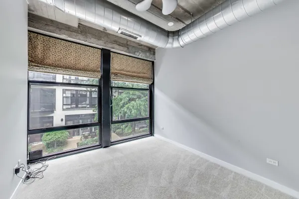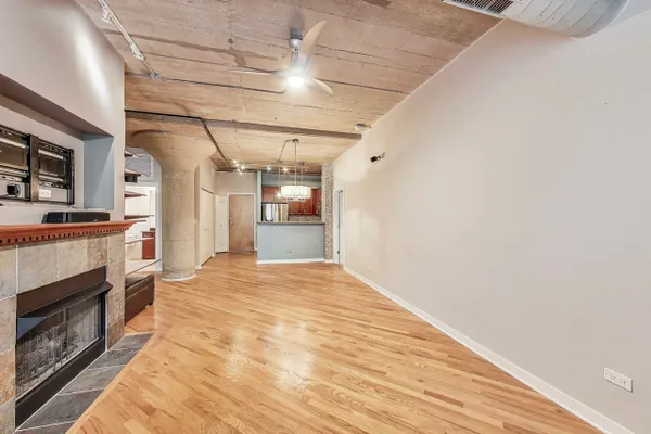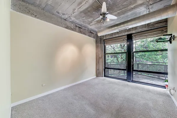 Looking for more space and more privacy? This quiet,1226 sq. ft. condominium has high concrete ceilings and FULLY-ENCLOSED BEDROOMS with a fully-enclosed office! Heated, garage parking is INCLUDED. This designer-improved unit has NEW CARPETING in the bedrooms, diagonal real oak hardwood floors, upgraded appliances -- including a brand new refrigerator -- and subway tile on the backsplash and throughout the kitchen. Elfa Custom Shelving is plentiful in the living/dining area on both sides of the fireplace, in the office and in the closets. There's a TV cut out and a previously installed TV bracket in the living room. The Bose Surround Sound System, with outdoor/balcony speaker, will stay. Both bathrooms are nicely upgraded with a stand-up shower in the primary and a tub in the second. Front-loading W/D in unit. A private balcony overlooks a plush, beautifully landscaped courtyard. DirecTV & Internet are included in the monthly assessment. University Commons is a pet-friendly historical complex converted in 2006 and made up of six buildings in Chicago's University Village neighborhood. In addition to its superior location, pinned between Little Italy and Pilsen, and just 13 blocks from the hot West Loop, the buildings offer a slew of amenities including gyms, recreation rooms, 3-sided decks, an outdoor pool and a 26-seat movie theater for streaming, watching Bears games, etc. Come see us today!