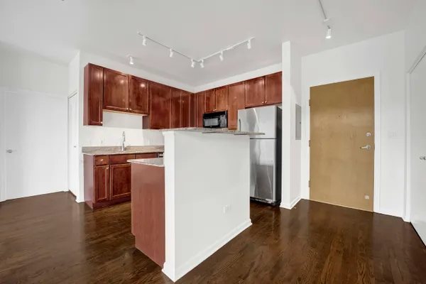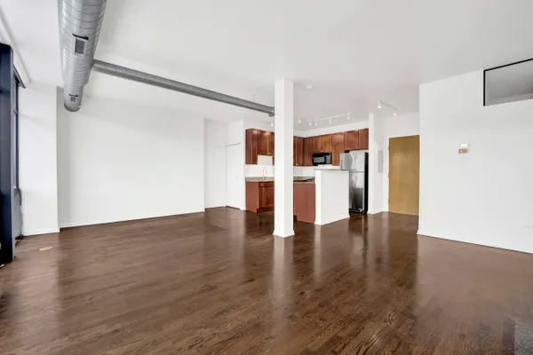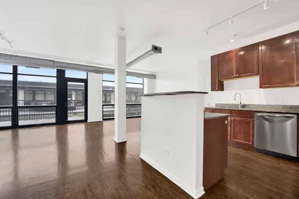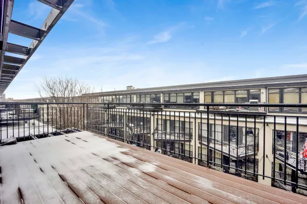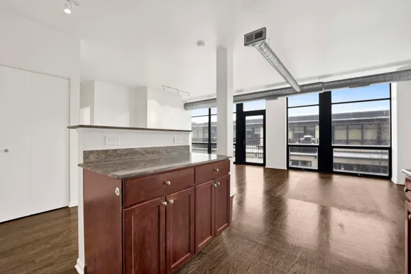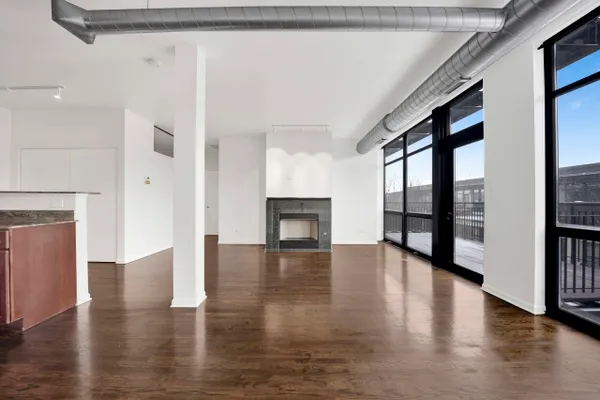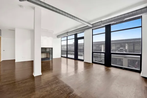Discover this exceptional 2-bedroom, 2-bathroom penthouse condo with a versatile den/office, situated atop a historic loft building. This newer construction residence presents in pristine condition, featuring dark-stained hardwood floors, professional modern neutral paint, and freshly cleaned carpets. The highly desirable split floor plan ensures privacy with fully enclosed bedrooms. The gourmet kitchen boasts granite countertops and stainless steel appliances, opening seamlessly to a spacious dining and living area anchored by a granite-tiled fireplace. Floor-to-ceiling windows flood the living spaces and bedrooms with natural light. The luxurious master suite includes a massive walk-in closet (9'x5'), and convenience is paramount with an in-unit washer/dryer. Step outside to your expansive private deck (20'x8'), offering views of the landscaped courtyard and glimpses of the city skyline. One indoor heated garage parking space for additional $30,000. Monthly assessments cover DirectTV and high-speed Internet. Residents enjoy a full-amenity complex featuring an outdoor pool, movie theater, fitness center, party room, and a common roof deck. A rare opportunity to own a home that truly has it all.