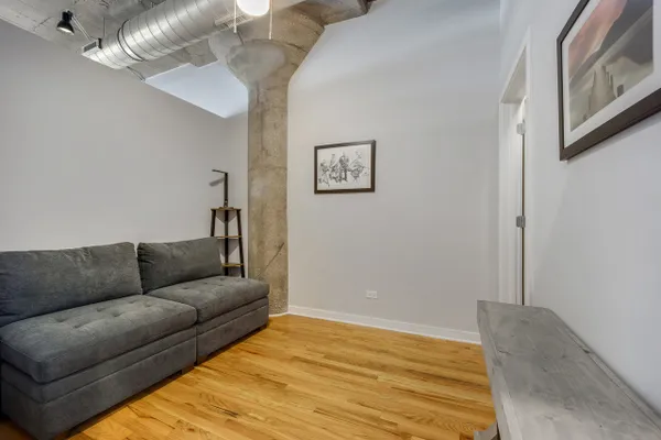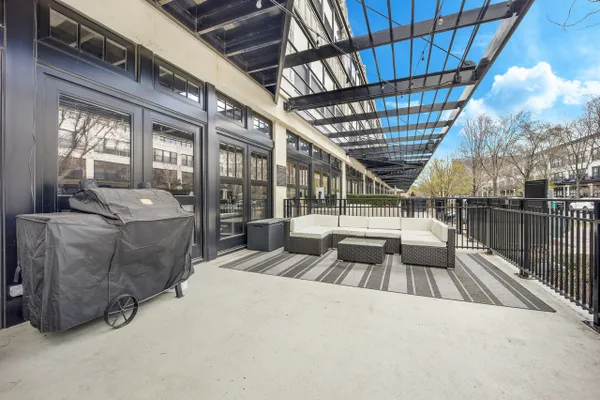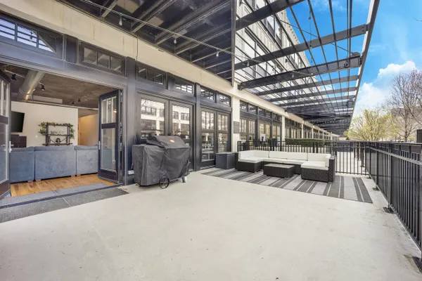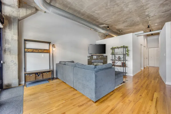 Bright, warm, and inviting, this two-bedroom, two-bathroom soft loft blends an airy aesthetic with refined ambiance and distinctive architectural character. Enter through a private, gated walkway onto an expansive patio surrounded by lush landscaping. Floor-to-ceiling windows flood the interior with natural light, creating a seamless indoor-outdoor flow. The living space is anchored by a stone-tiled fireplace and features rich hardwood floors throughout. The well-appointed kitchen offers ample cabinetry, granite countertops, a stylish backsplash, and a convenient breakfast bar. The spacious primary suite includes hardwood floors and a beautifully tiled en-suite bath with a dual vanity and a deep soaking tub. The second bedroom also features hardwood floors and a walk-in closet complete with built-in organizers. Embrace a carefree, resort-style lifestyle at the amenity-rich University Commons. Residents enjoy a heated outdoor pool, award-winning grounds, pet-friendly walking paths, and wraparound rooftop decks with breathtaking skyline views. Additional building perks include a fitness center, party room, private screening theater, and an on-site property manager. Ideally situated just a short city stroll from adjacent. Additional for a heated secure garage space.