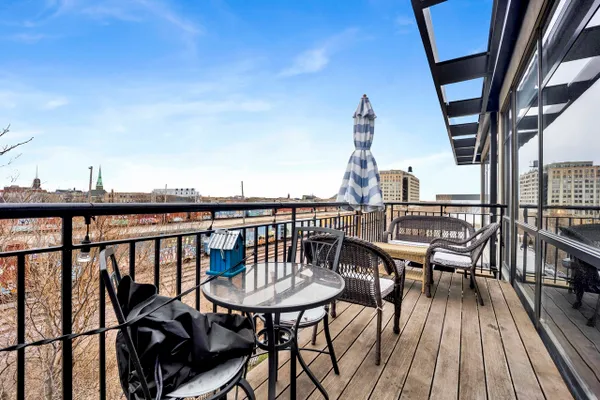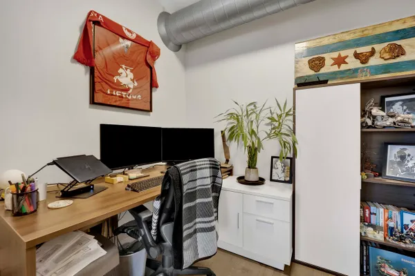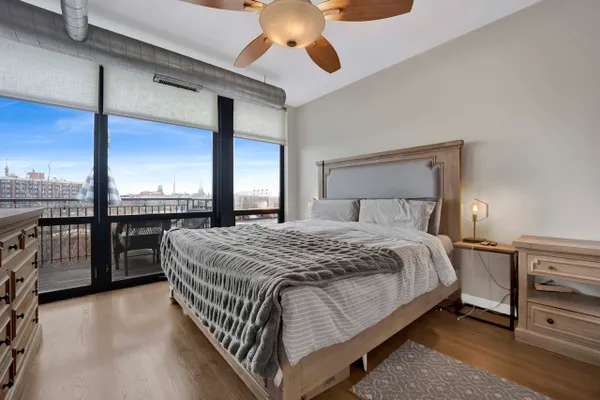 This highly upgraded 2-bedroom, 2-bath penthouse with an additional office/den sits atop a sought-after historic loft building in University Commons, ideally positioned between the West Loop and Pilsen neighborhoods. Inside, the home has been thoughtfully refreshed with a recently updated kitchen, fresh paint, and hardwood floors throughout, creating a clean, modern feel that stands out from other units in the building. The south-facing layout floods the space with natural light, enhanced by floor-to-ceiling windows that span the main living areas. The floor plan is one of the most desirable in the complex, featuring two fully enclosed bedrooms and a versatile 9x7 den, perfect for a home office or flex space. Step outside to your private 20x6 deck, ideal for grilling or unwinding. Additional features include granite countertops, stainless steel appliances, in-unit washer and dryer, and ceiling fans throughout. Monthly assessments include internet for added convenience. Residents enjoy access to a full suite of amenities including a fitness center, outdoor pool, recreation rooms, and a private movie theater. Perfectly situated for commuters, University Commons offers easy access to I-90/94, I-290, and Lake Shore Drive, along with nearby CTA options including the Pink Line (Polk and Ashland stations), the Blue Line at Racine, and multiple bus routes along Halsted, Ashland, and Roosevelt. This central location makes getting to the Loop, West Loop, Medical District, and beyond quick and convenient. Garage parking available for an additional cost.