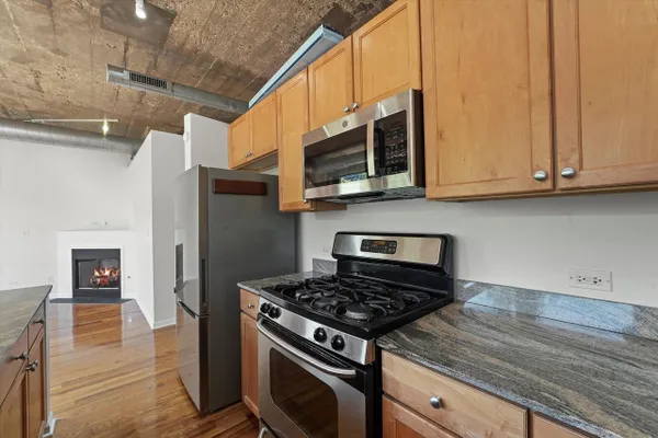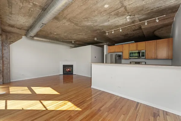 Welcome to this thoughtfully designed 2 bedroom, 2 bathroom south facing condo in the highly regarded University Commons community, set along a quiet, tree lined street. The home offers a well planned layout that maximizes livability, with oak hardwood floors throughout, a gas fireplace, and in unit laundry. The living area is wide and functional, allowing for both comfortable seating and a dedicated dining space, while maintaining an open, uncluttered flow. Step outside to a private balcony, ideal for morning coffee or evening downtime. The primary suite features a full en suite bath and generous closet space, while the second bedroom easily accommodates a queen sized bed and works well as a guest room or home office. A deeded, in door garage parking space and an assigned storage cage are included. The professionally managed building recently completed a new roof in November 2025, offering added peace of mind for future ownership. Residents enjoy an impressive suite of amenities including an outdoor pool, roof level fitness center, sun deck with city views, party room, 26 seat theater, bike room, elevators, and beautifully maintained grounds. Monthly assessments include cable, internet, hot water, and landscaping. Conveniently located near UIC, Pilsen, and the West Loop corridor, with easy access to dining, shopping, and transportation, this home offers full amenity living with comfort, efficiency, and long term value. Schedule your private tour now!